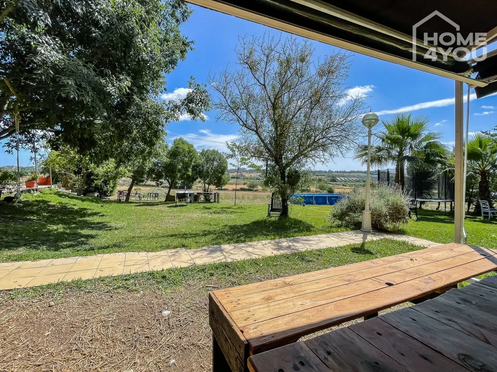 Über eine lange Zufahrt erreichen Sie diese charmante Finca im Landhausstil. Sie ist eingebettet in einer kleinen grünen Oase mit Bäumen, Sträuchern und einem kleinen Teich.