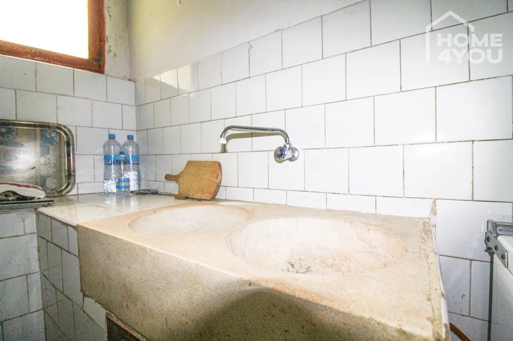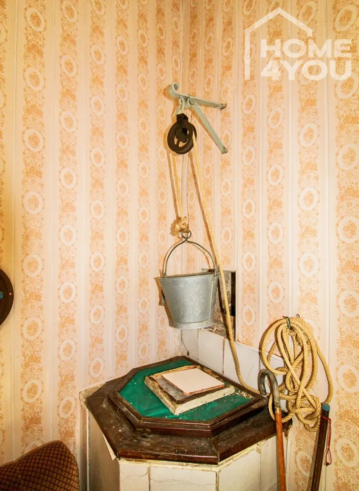 Aktuell gibt es 4 Schlafzimmer, eines davon mit einem kleinen Ankleidezimmer, Wohnzimmer, Zwischenräume, die Küche mit einer schönen alten Spüle aus Naturstein, einem Kamin und einer großen Speisekammer mit alten Holztüren.
