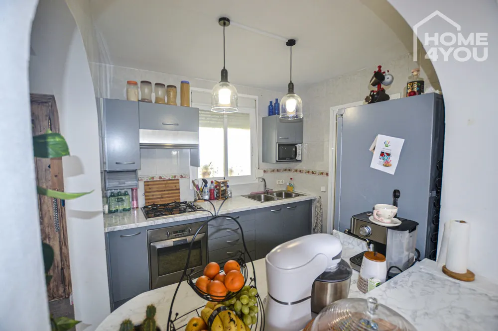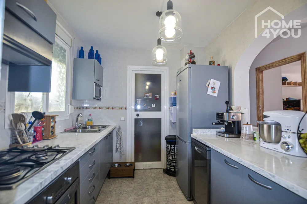Die Küche verfügt über eine große offene Durchreiche, welche ihr ein offenes Raumgefühl gibt und praktisch zugleich ist.
