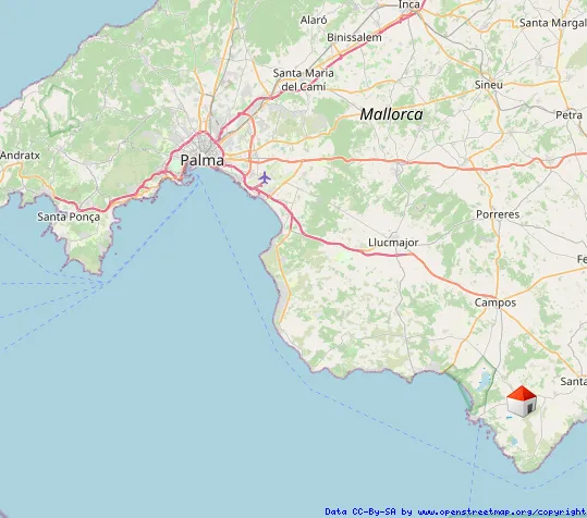 Vom Flughafen nach Ses Salines sind es ca. 50 km und auf Grund der seit 2020 bis Campos bestehenden Autobahn und den dann sehr gut ausgebauten Straßen lediglich 30 bis 35 Minuten Fahrzeit.
