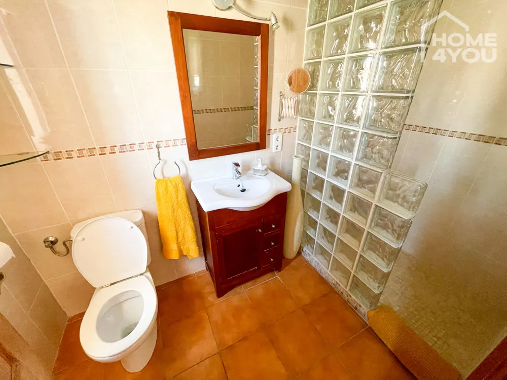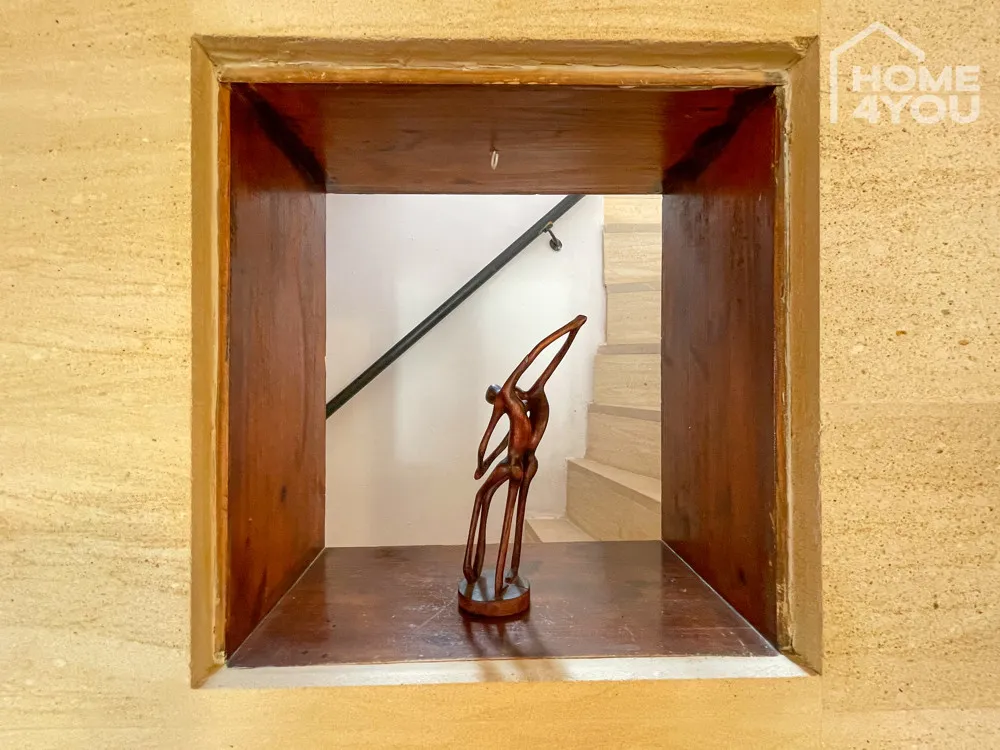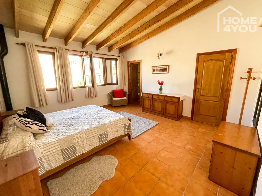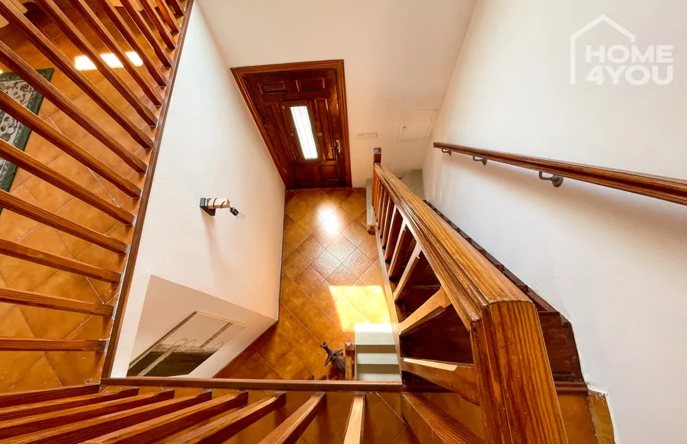 Man betritt das Haus über einen offnen Flur, von wo aus man direkten Zugang zum ersten Schlafzimmer mit verspiegelten Einbauschränken hat. Ebenerdig kann man nach dem Aufstehen sozusagen direkt aus dem Bett auf den modern verglasten Balkon fallen und den Blick auf den darunter liegenden Garten geniessen. Auf der selben Ebene befindet sich auch der Zugang zur Einliegerwohnung.
