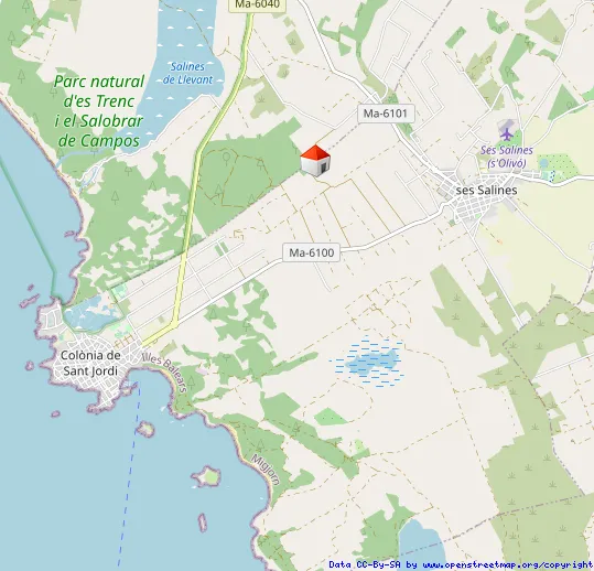 Das Areal liegt in einer sehr exklusiven Top-Ruhiglage unweit der Stadt Ses Salines und dem berühmten Traumstrand Es Trenc. Es ist zum Teil mit Steinmauern abgegrenzt und