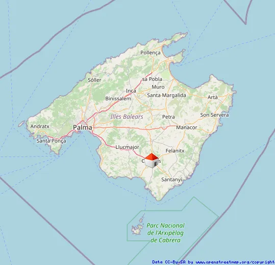 Letztgenannte ist bekannt für den Traumstrand "Es Trenc" und ist nur etwa 10 km entfernt und ist damit bequem in rund 15 Minuten erreichbar.