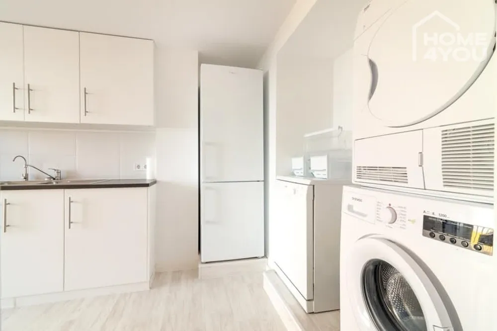 Wenn Sie die Traumwohnung betreten, gelangen Sie zuerst in den hellen Wohn/Essbereich, der durch die große Fensterfront perfekt durchleuchtet ist. Helles und freundliches Weiß dominiert hier und gibt dem Appartement seinen modernen Charakter.