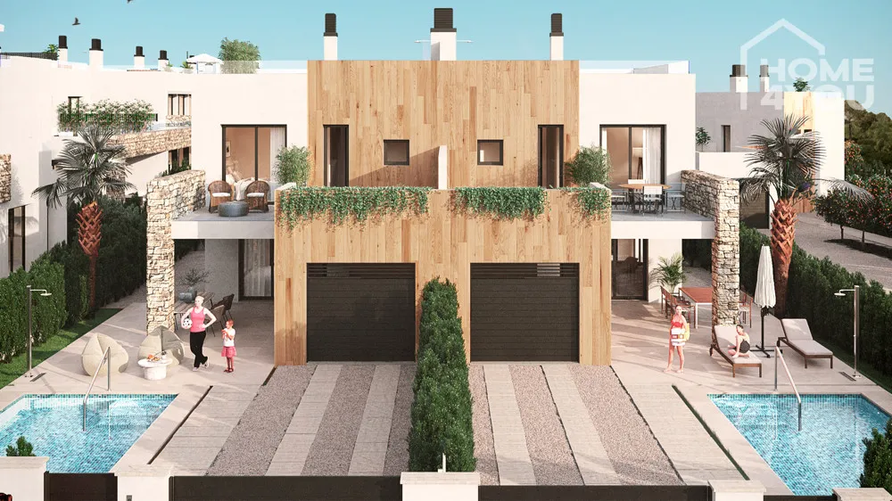 Jede Villa hat luxuriöse Qualitäten. Die offene Küche zum Wohnraum hin mit Kochinsel, großen Fenstern, seinen geraden Linien und externen Strukturen, erstrecken den Innenraum und verwischt die Grenze von innen nach außen. Darüber hinaus verfügen die Villen über große Terrassen, Veranden und Dachterrassen und Gärten sowie Bäume/Palmen, mit denen Sie Ihr Zuhause am Meer in einer priviligierten Umgebung mit den besten Annehmlichkeiten genießen können.