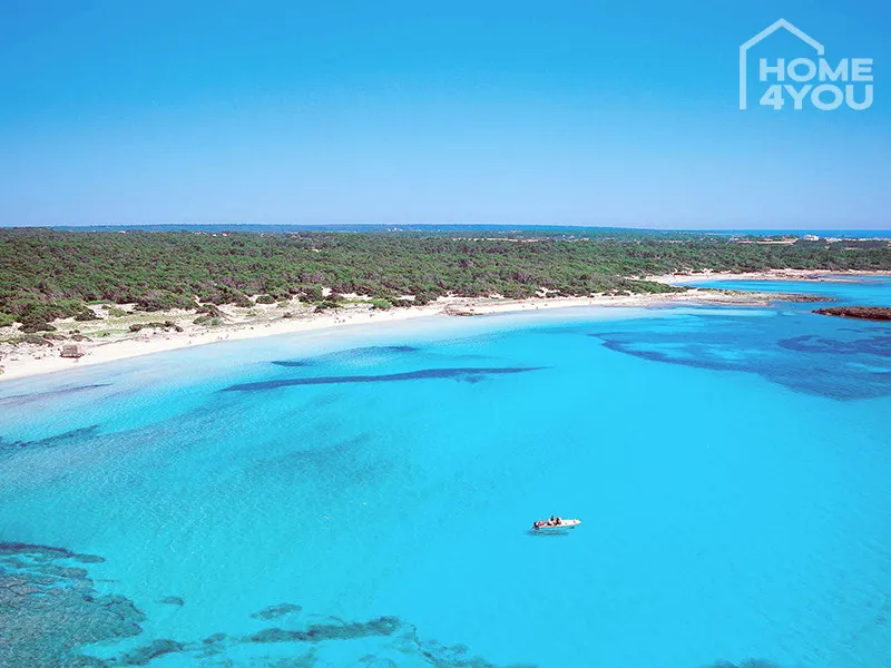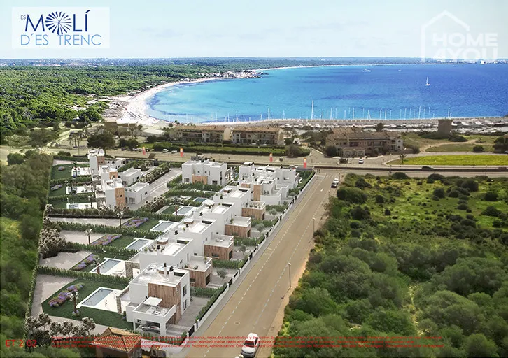 Die einzigartige Luxus-Villa im mallorquinischen Stil wurde kostenfreundlich als DHH geplant und befindet sich umgeben von herrlicher Natur in direkter Lage zum Strand von „Es Trenc“, der sich über Ses Covetes bis nach Colonia de San Jordi erstreckt. Der über 3 km lange Strand von Es Trenc ist für seinen weißen Sand und das kristallklare, karibisch anmutende Wasser bekannt.
