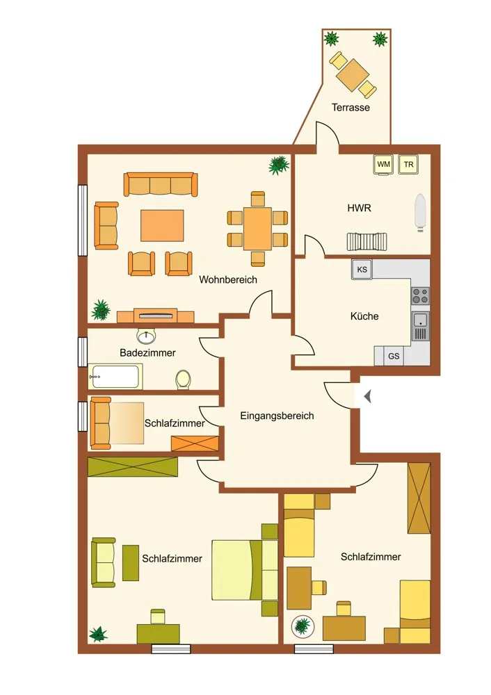 Auf dieser Ebene sind 3 Schlafzimmer, 1 Badezimmer, die Küche mit anliegendem HWR und Balkon sowie das üppige Wohnzimmer die Basis für Ihre Gestaltungsideen.