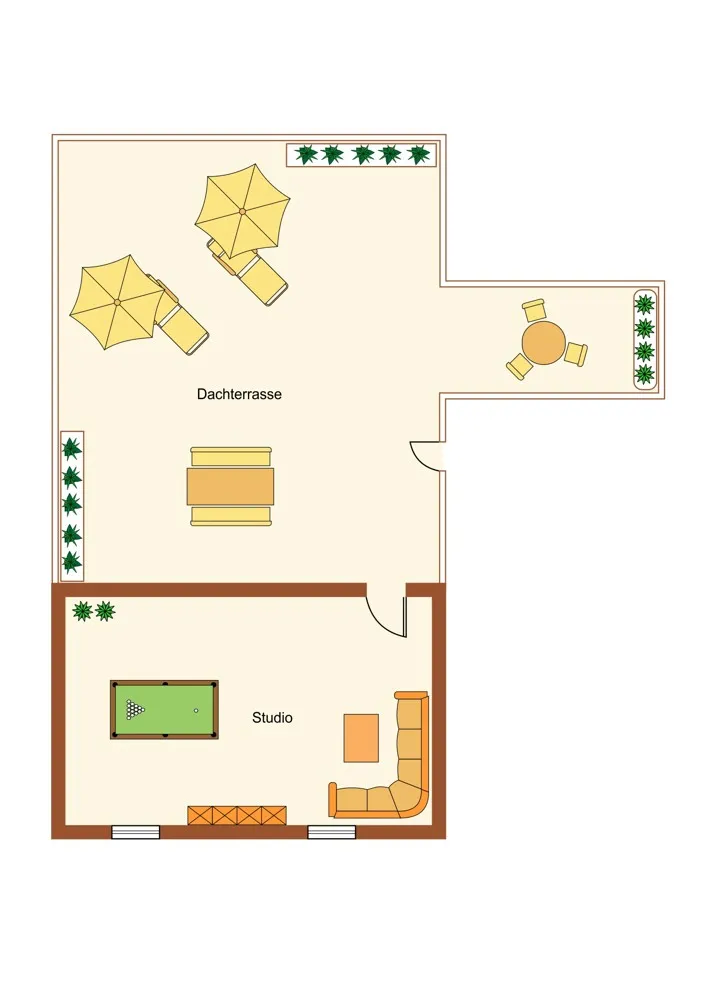 Hier wartet ein Studio nur darauf, nach Ihren Wünschen fertiggestellt und bezogen zu werden. So kann hier ein ideales Gäste-Apartment im modernen Stil mit traditionellen Elementen oder ein eigenes Fitnessstudio entstehen. Alle Möglichkeiten stehen Ihnen offen.