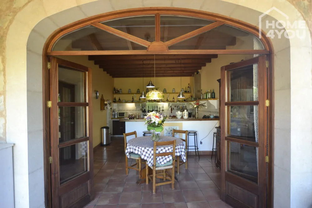 Durch einen historischen Torbogen betreten Sie das typisch mallorquine Entree mit den für diese Region typischen Steinwänden.