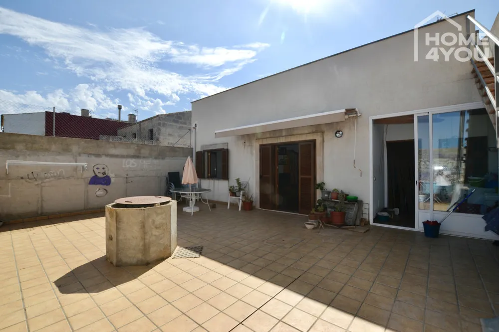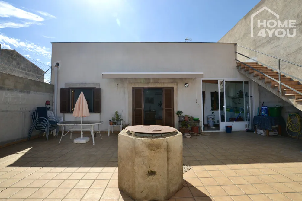 Unweit des Marktplatzes und inmitten der begehrten Gemeinde Ses Salines liegt eines der letzten, massiv im Jahr 2010 gebauten, Stadthäuser mit großem Innenhof in ruhiger Randlage, angrenzend an die Bebauungsgrenze des Ortes.
