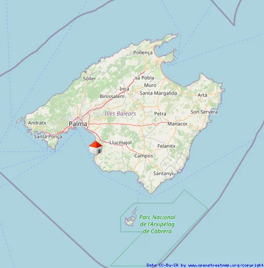 Die Stadt liegt südöstlich des Flughafens Palma zu Füßen (ca. 4 Kilometer südwestlich) des Berges Puig de Randa an der von Palma in Richtung Santanyí führenden Straße.