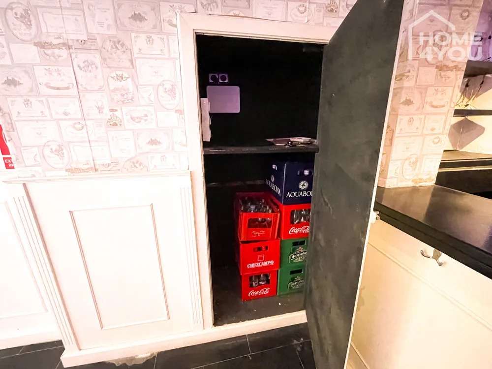 Genug Staumöglichkeit bieten die Räumlichkeiten direkt hinter der Theke, die noch zusätzlich über ein Fenster verfügen.