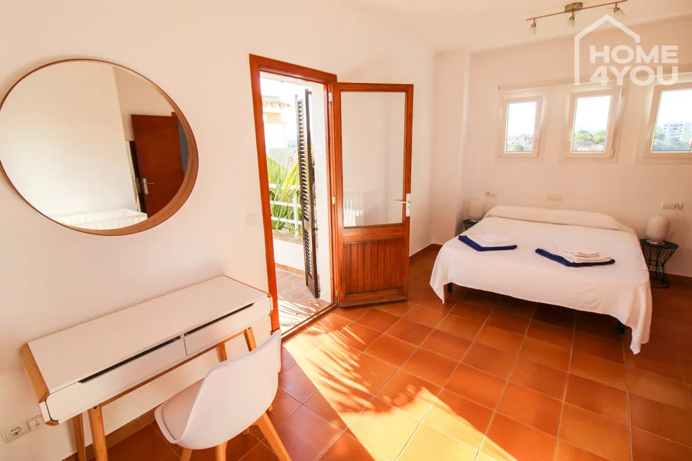 Im 1. OG befinden sich 2 weitere Schlafzimmer (eines davon ist das Hauptschlafzimmer mit doppelter Grösse), beide besitzen ihre eigene Terrasse mit Meerblick.