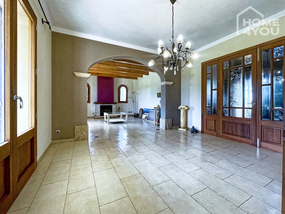 In Verlängerung befindet sich der großzügige Ess- und Wohnbereich mit Kamin, welcher auch in den kühleren Wintermonaten für kuschelige Wärme sorgt. Die Wohnräume sind durch einen wunderschönen Bogengang mit Beleuchtung getrennt. Hier gibt es jeweils einen Ausgang auf die Veranda mit Blick Richtung eigenen Garten.
