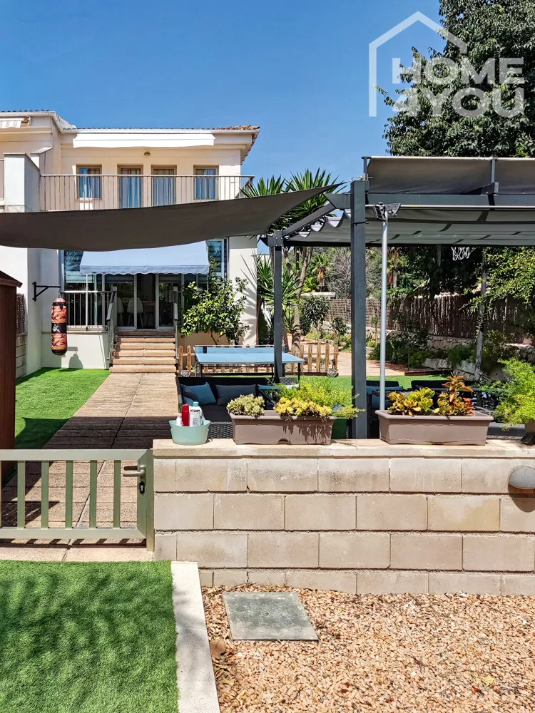 Hier finden Sie eine Pergola mit Essbereich und einer gemütlichen Lounge, einen Grillplatz und Zugang zum Gemeinschaftsbereich.