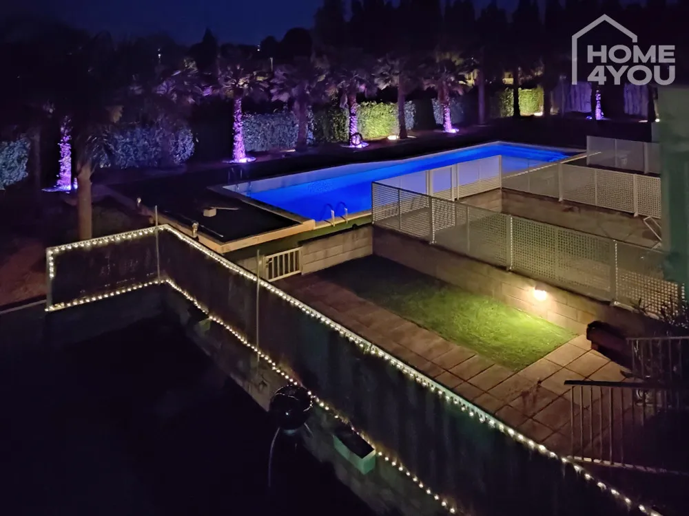 Das Haus ist mit einer Klimaanlage in allen Räumen, einem Pelletofen und einer Alarmanlage ausgestattet. Ebenfalls ist der Wohnbereich mit Parkettboden ausgelegt. Das Anwesen bietet ausreichend Parkmöglichkeiten, mit Platz für zwei Autos innerhalb der Anlage, sowie zusätzlichen Abstellräumen.
