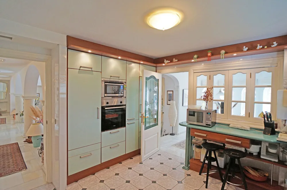 Auf ca. 300qm Wohnfläche befinden sich ein großzügiges lichtdurchflutetes Wohnzimmer mit Kamin, eine moderne Einbauküche sowie vier Schlafzimmer und vier Badezimmer. Alle Räume sind hell und freundlich gestaltet. Das Grundstück hat eine Größe von ca. 1040qm groß.