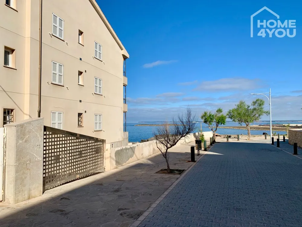 Sie betreten das gut gepflegte Gebäude und gelangen direkt in das helle Wohnzimmer mit atemberaubenden Meerblick und der geräumigen Terrasse, die an den über 300 Sonnentagen den Lebensmittelpunkt auf Mallorca darstellt.