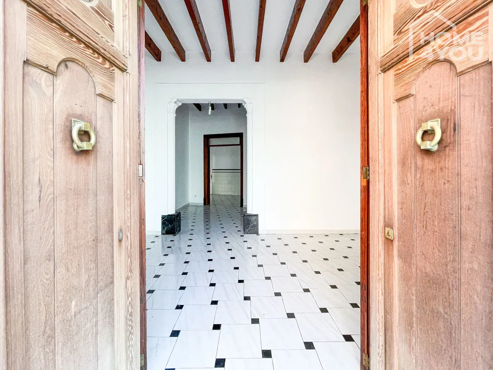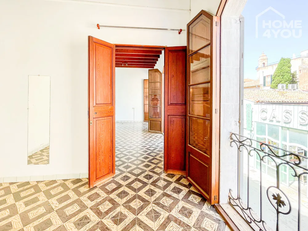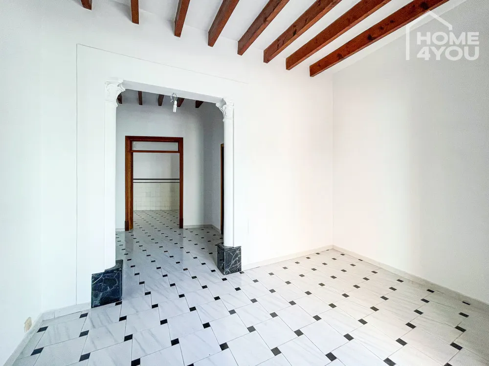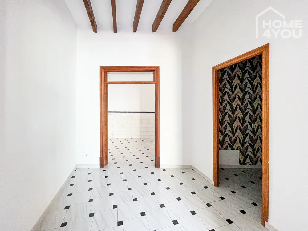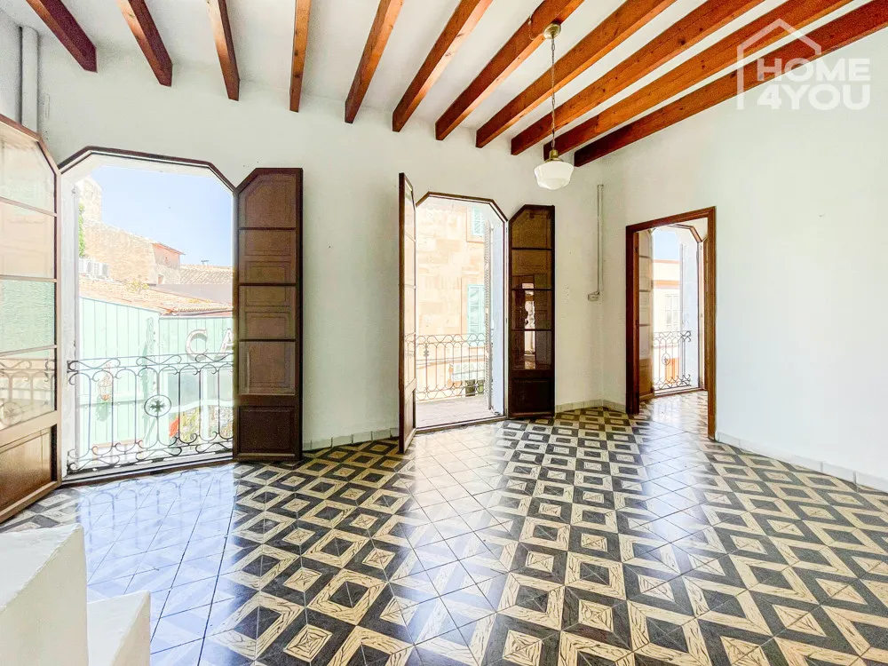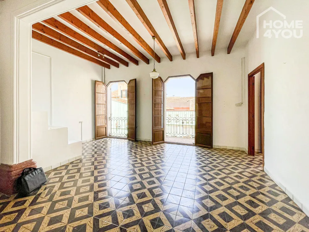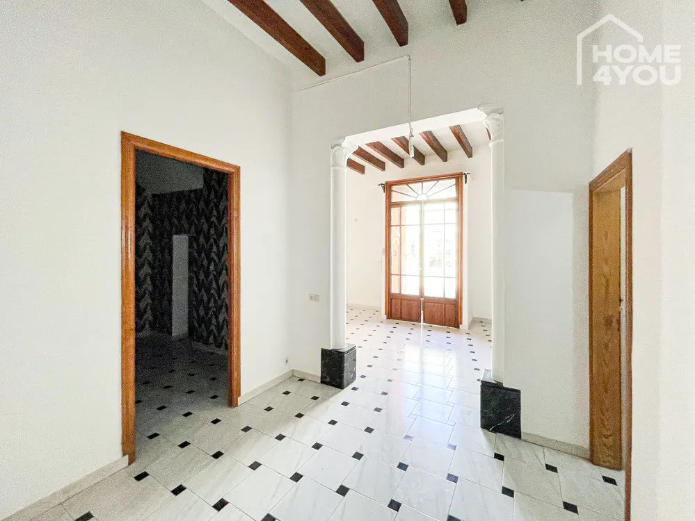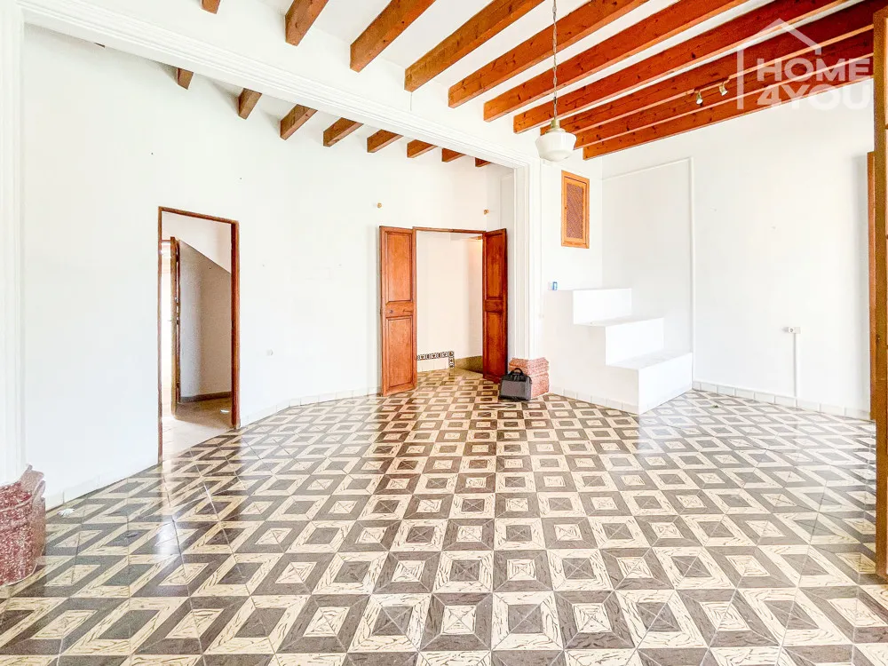 Im ganzen Gebäude findet man typische Merkmale eines mallorquinischen Hauses mit hohen Decken, Stuckbögen, sichtbaren Balken, wunderschönen, hydraulischen Fliesen und massiven schönen Holztüren.