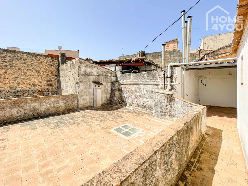 Im Erdgeschoss betreten Sie die freundliche, helle Immobilie und finden einen stattlichen Eingangsbereich. Von hier gelangt man in eines der Schlafzimmer mit angrenzendem Badezimmer. Danach kommt man in das Esszimmer, das in die großräumige Küche führt, die mit einer Einbauküche versehen ist und mit einem alten mallorquinischen Brunnen, der als Zisterne dient. Vom Esszimmer führt eine Tür in ein weiteres Zimmer- das sowohl als Schlafzimmer als auch als Stauraum, HWR o.ä. genutzt werden könnte. So gelangen Sie über dieses Zimmer als auch über die Küche in das Wohnzimmer von diesem man direkt in den Innenhof mit seinem weiteren Badezimmer kommt, wie es früher hier auf Mallorca üblich war. Und vom Innenhof aus finden Sie bequemerweise in die Garage, die über eine Nebenstraße zu befahren ist.