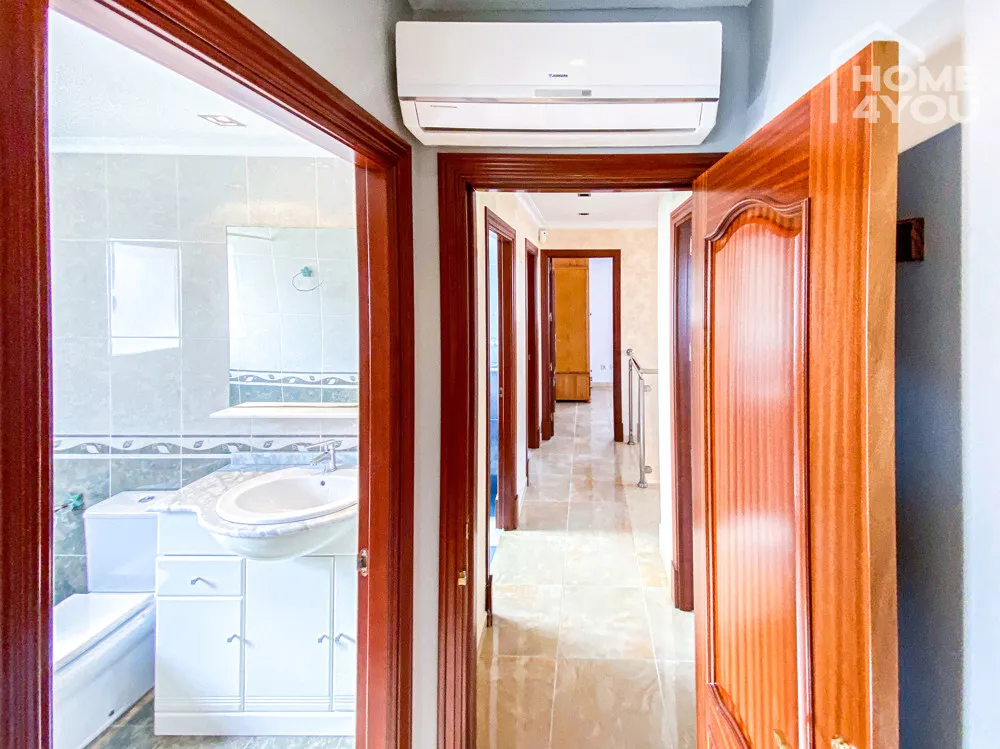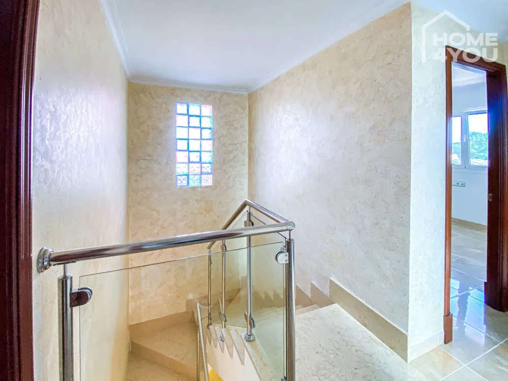 Im 1. OG befinden sich vier Schlafzimmer und zwei Bäder. Das Gebäude ist voll klimatisiert und sorgt damit in den Sommermonaten für angenehme Frische und in den Wintermonaten für mollige Wärme.