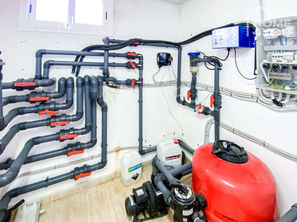 Der Technikraum im UG beinhaltet auch die Haus-/ und Pooltechnik.