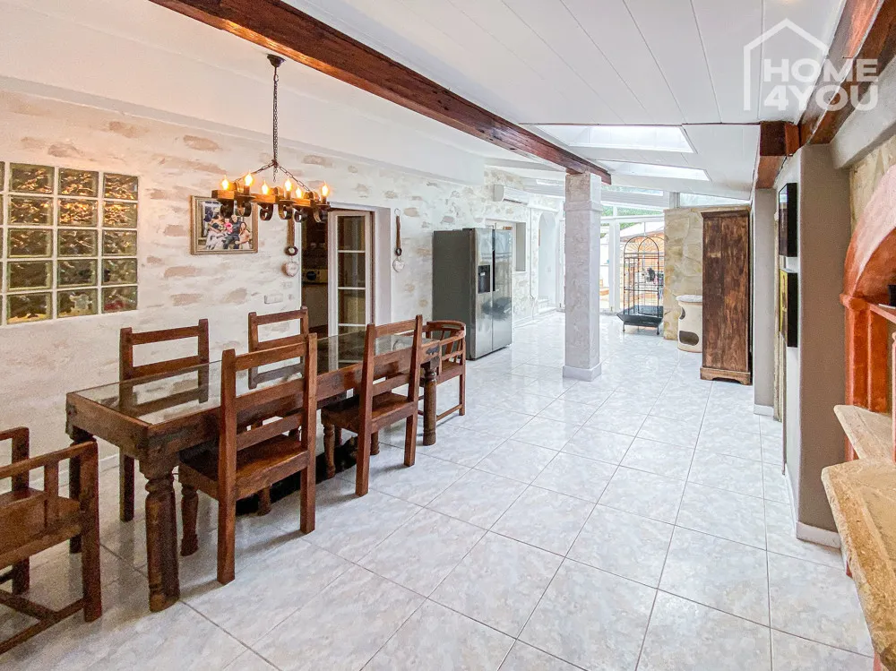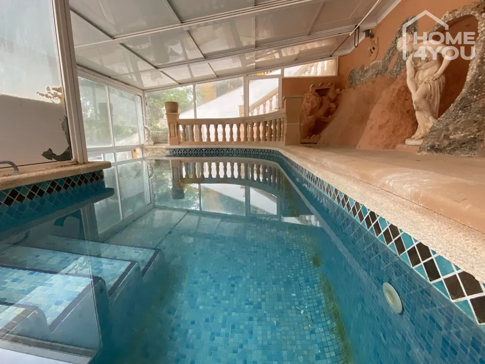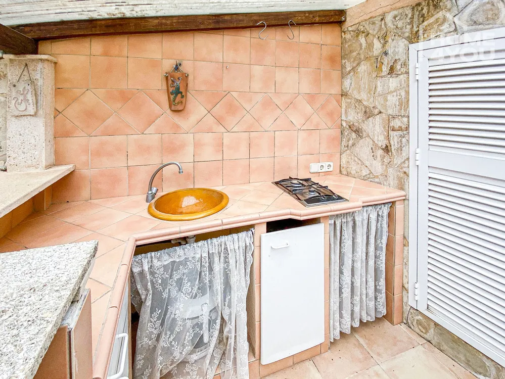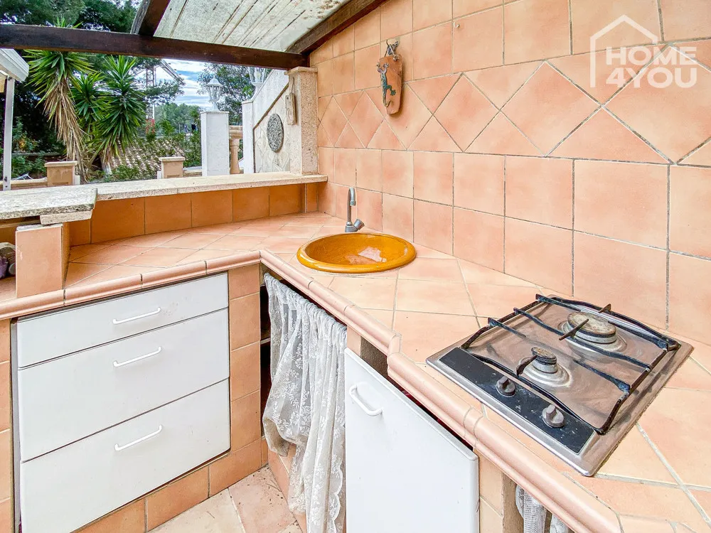 Im wunderschönen Außenbereich befindet sich noch eine Außenküche mit Wasser- und Stromanschluss, hier werden Grillabende mit ihren Freunden zum Highlight. Rechts davon befindet sich der überdachte Pool, der zu jeder Jahreszeit für Erfrischung sorgt.