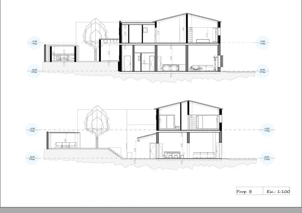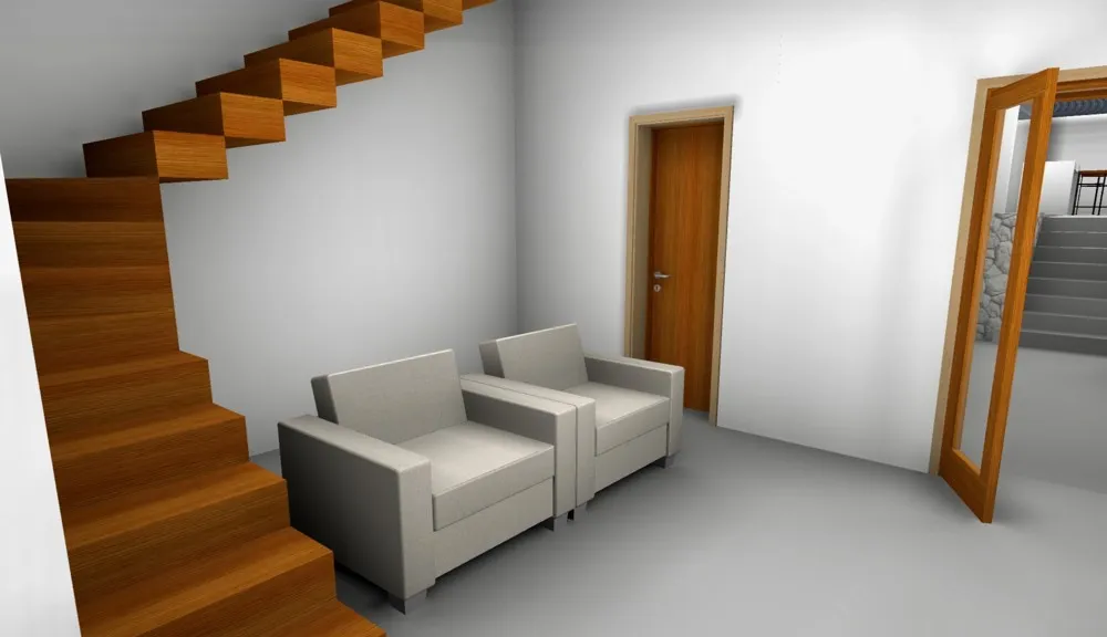 Der unten liegende Wohnbereich wurde großzügig und möglichst ohne störende Mauern gestaltet, im oben liegenden Schlafbereich wurde auf eine bestmögliche Raumnutzung geachtet.