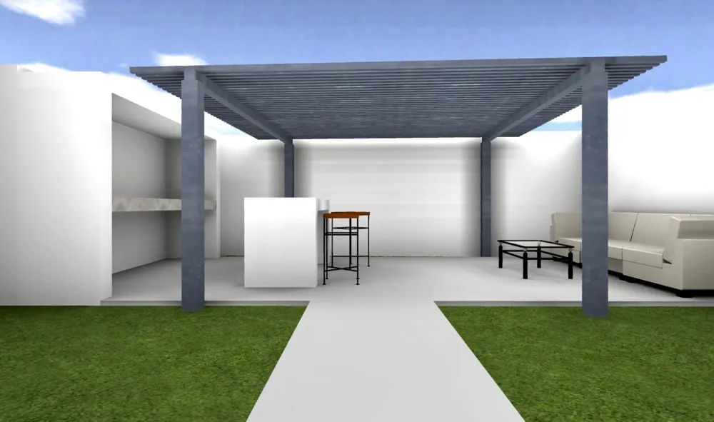 Im Garten befindet sich eine Außenküche mit Essplatz und eingroßzügiger Waschraum.