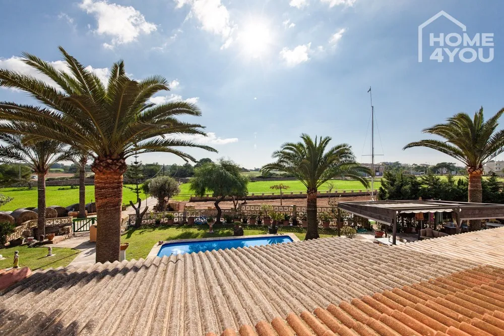 Direkt am Ortseingang liegt das Anwesen auf einer leichten Anhöhe und bietet alles, was eine typisch mallorquine Finca zu bieten hat.