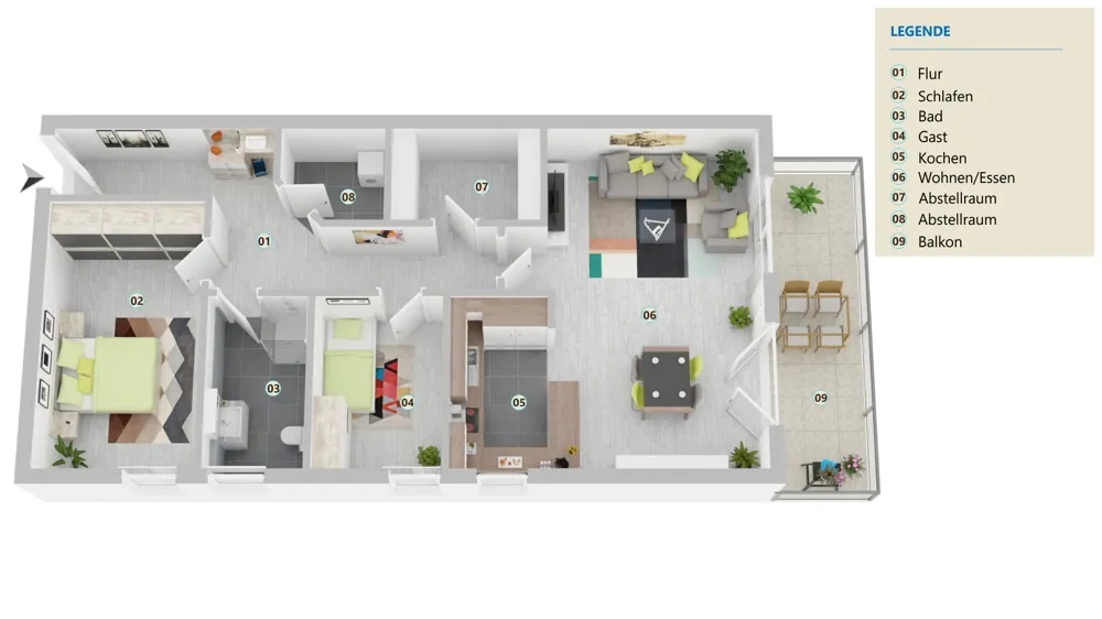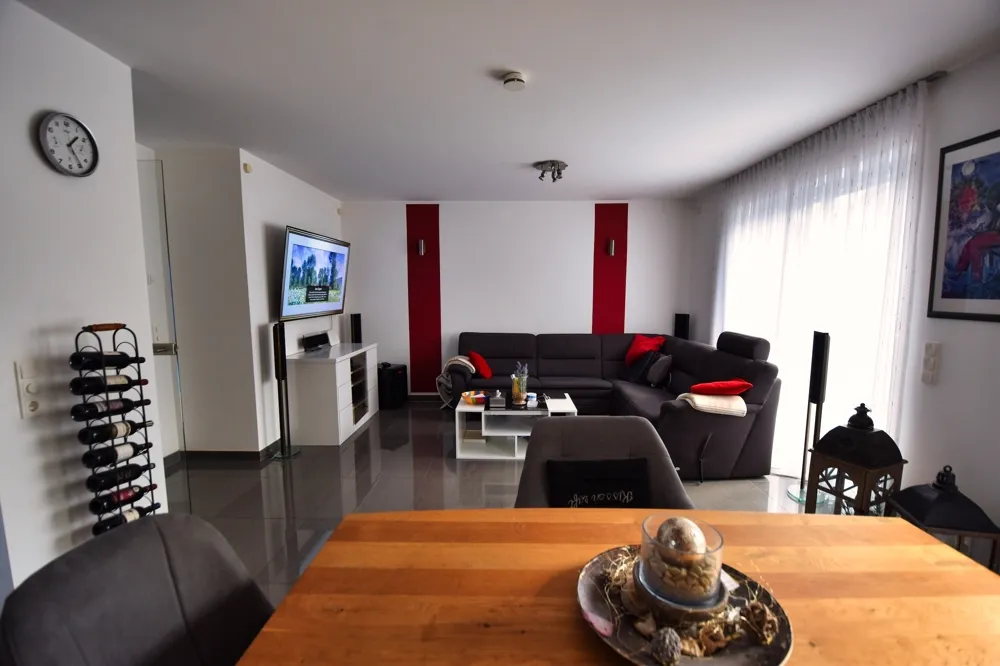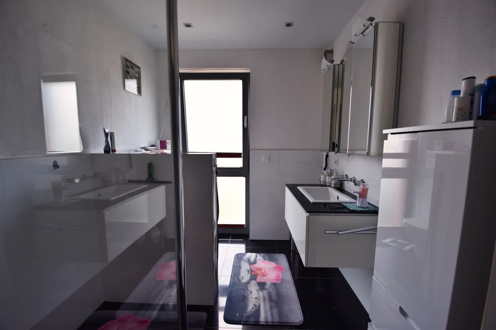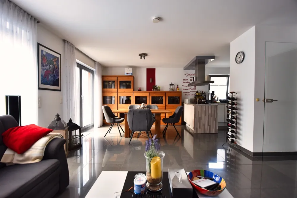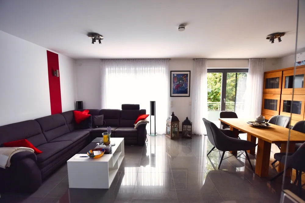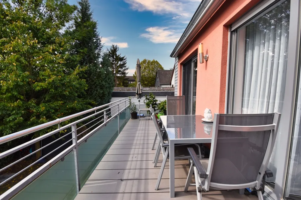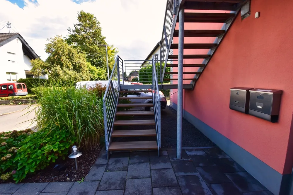 Bei diesem Angebot handelt es sich um eine exklusive Eigentumswohnung mit eigenem Eingang und Sonnenbalkon in begehrter, ruhiger Lage in Sankt Augustin-Birlinghoven. Mit ca. 93qm umfasst diese Wohnung einen großzügigen Wohn-/ Essbereich mit halboffener Küche und Zugang zum Balkon, ein Schafzimmer, ein Kinder-/ Arbeitszimmer, ein Bad mit ebenerdiger Dusche, WC und Fenster, einen Hauswirtschaftsraum mit Anschlüssen für Waschmaschine und Trockner sowie einen Dielen-/ Flurbereich mit Abstellraum. Zur Wohnung gehört ein eigener, offener PKW-Stellplatz (€ 10.000,-). Ein ebenerdiger Fahrradraum wird von den Hausbewohnern gemeinschaftlich genutzt.